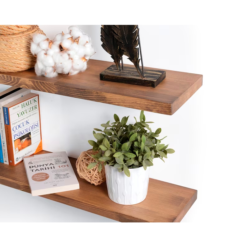 Sim! A madeira é pinus selecionado e o suporte invisível suporta tranquilamente objetos decorativos, livros, plantas leves e itens de uso diário.
