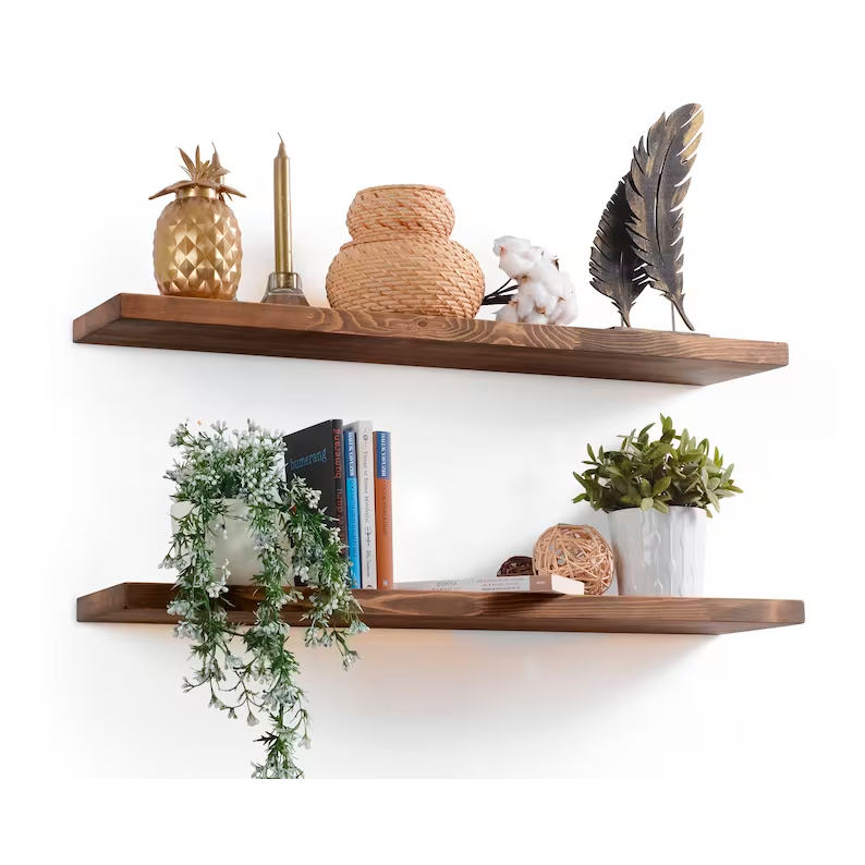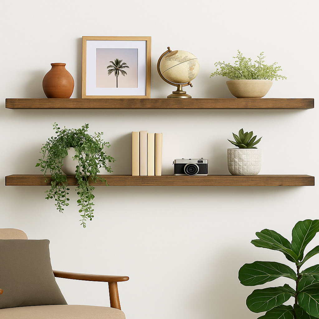 As Prateleiras de Madeira com Suporte Invisível são perfeitas para quem quer decorar e organizar com beleza, sem poluir o ambiente com ferragens e suportes aparecendo.
